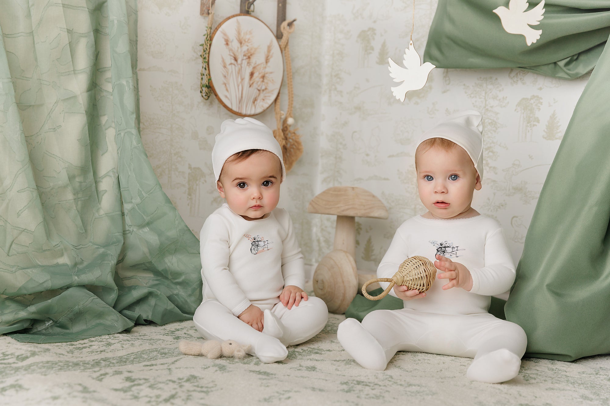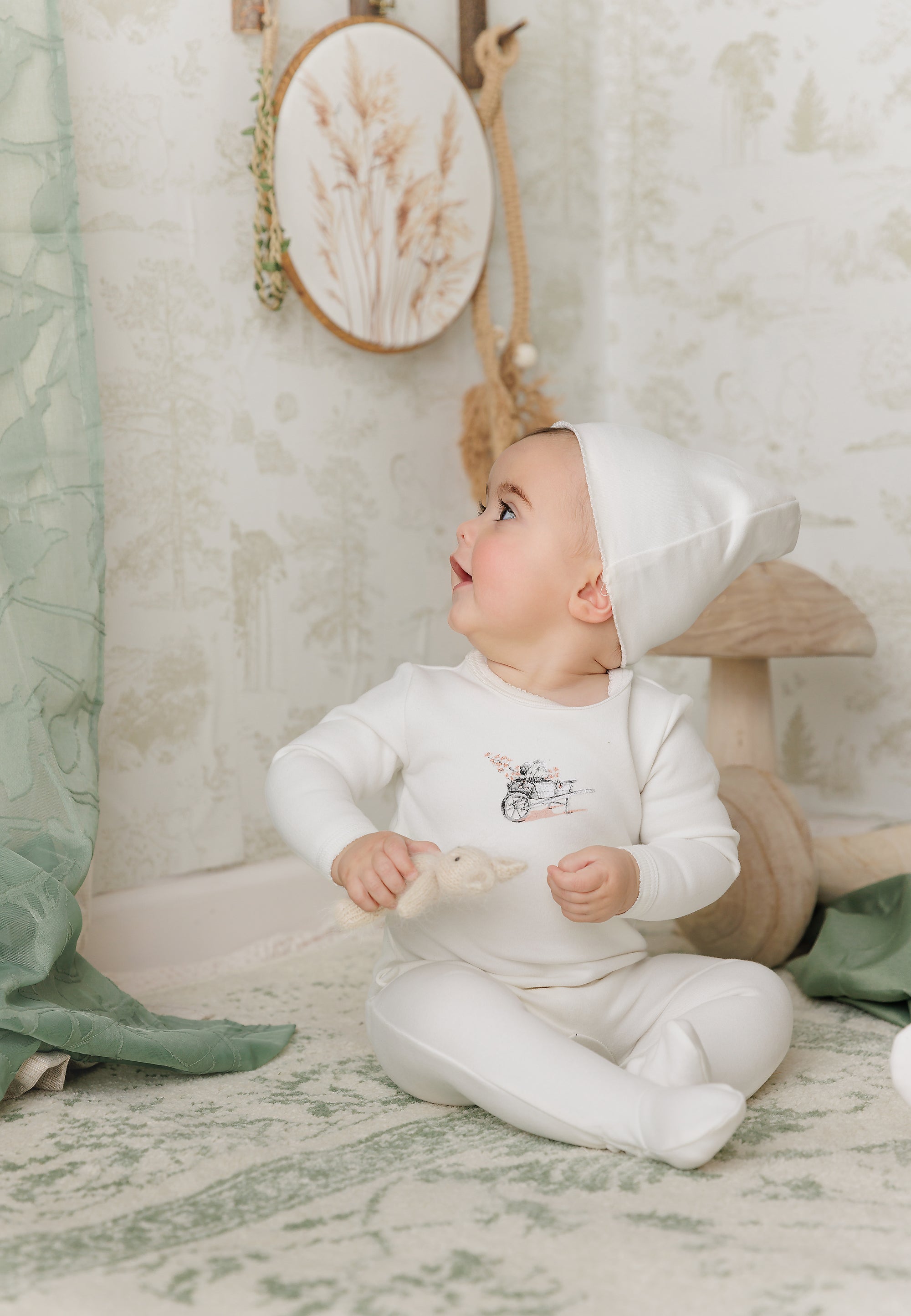 Soft cotton comfort with a sweet illustrated finish. This set features a charming flower wagon print with a matching bonnet for an easy, coordinated look. Designed in soft blue for boys and gentle pink for girls, it’s light, breathable, and perfect for everyday wear.