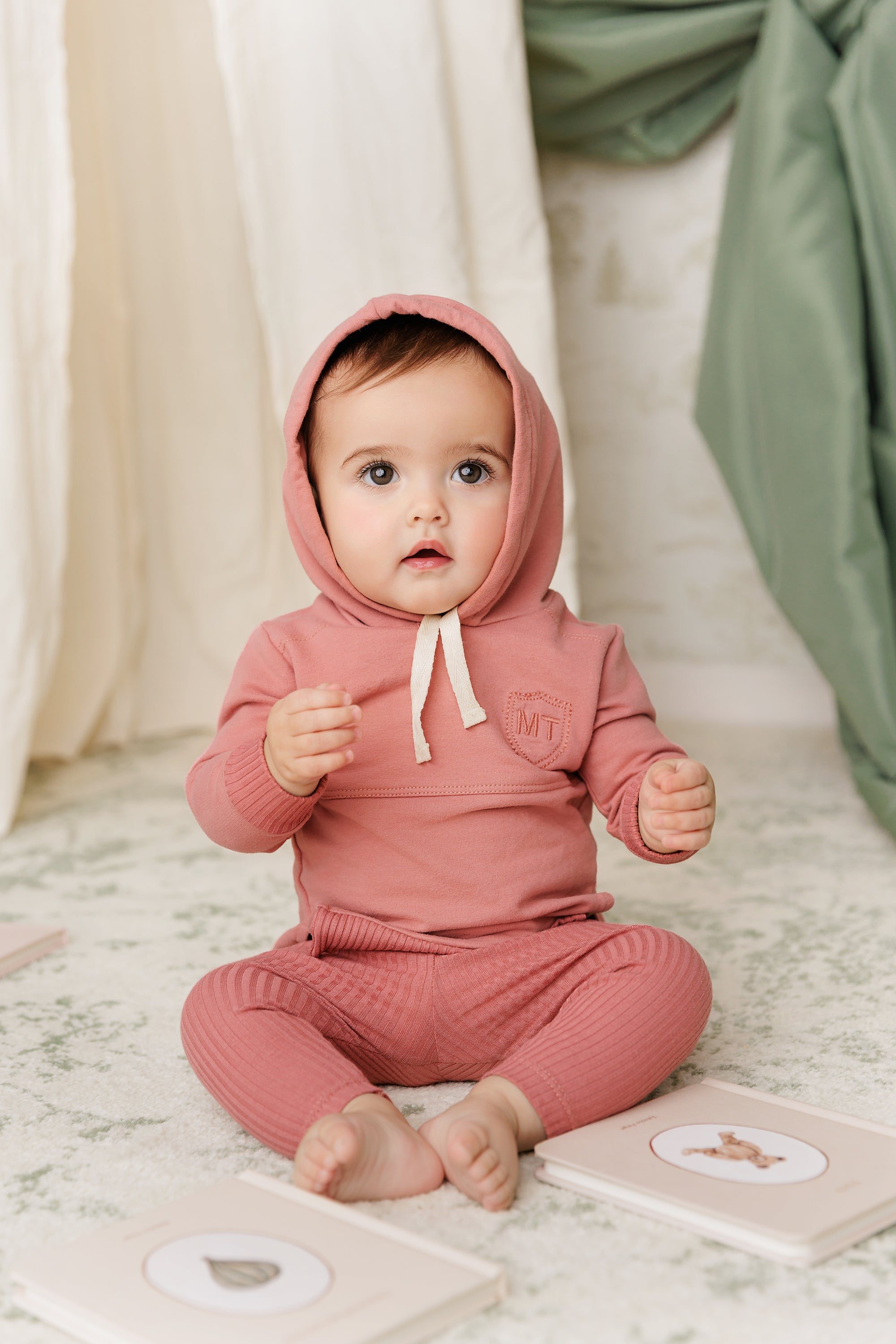 Slip into a little slice of luxury with this dreamy cotton hoodie and ribbed pants duo. The soft-as-a-cloud fabric hugs you just right, while the ribbed cuffs keep everything perfectly in place (goodbye, chilly wrists!). A touch of embroidered magic comes courtesy of the MT emblem on the chest, and the intricate sewing details on the chest and shoulders add a dash of sophistication.