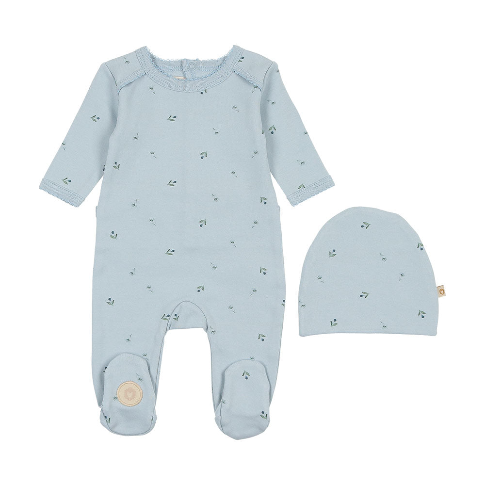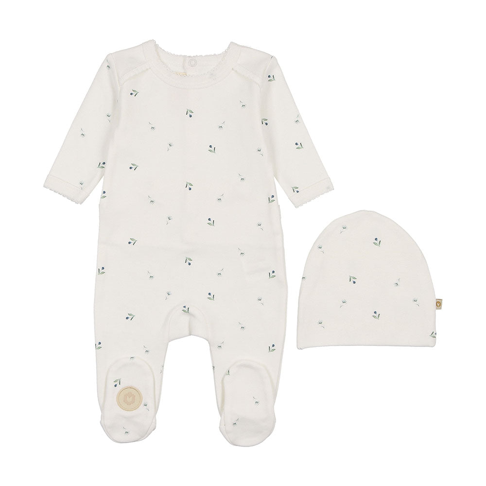 Plant some beauty on your bundle of love with this exquisite footie and hat. The downy cotton fabric sports an embroidered berry print. Matching jacket available.