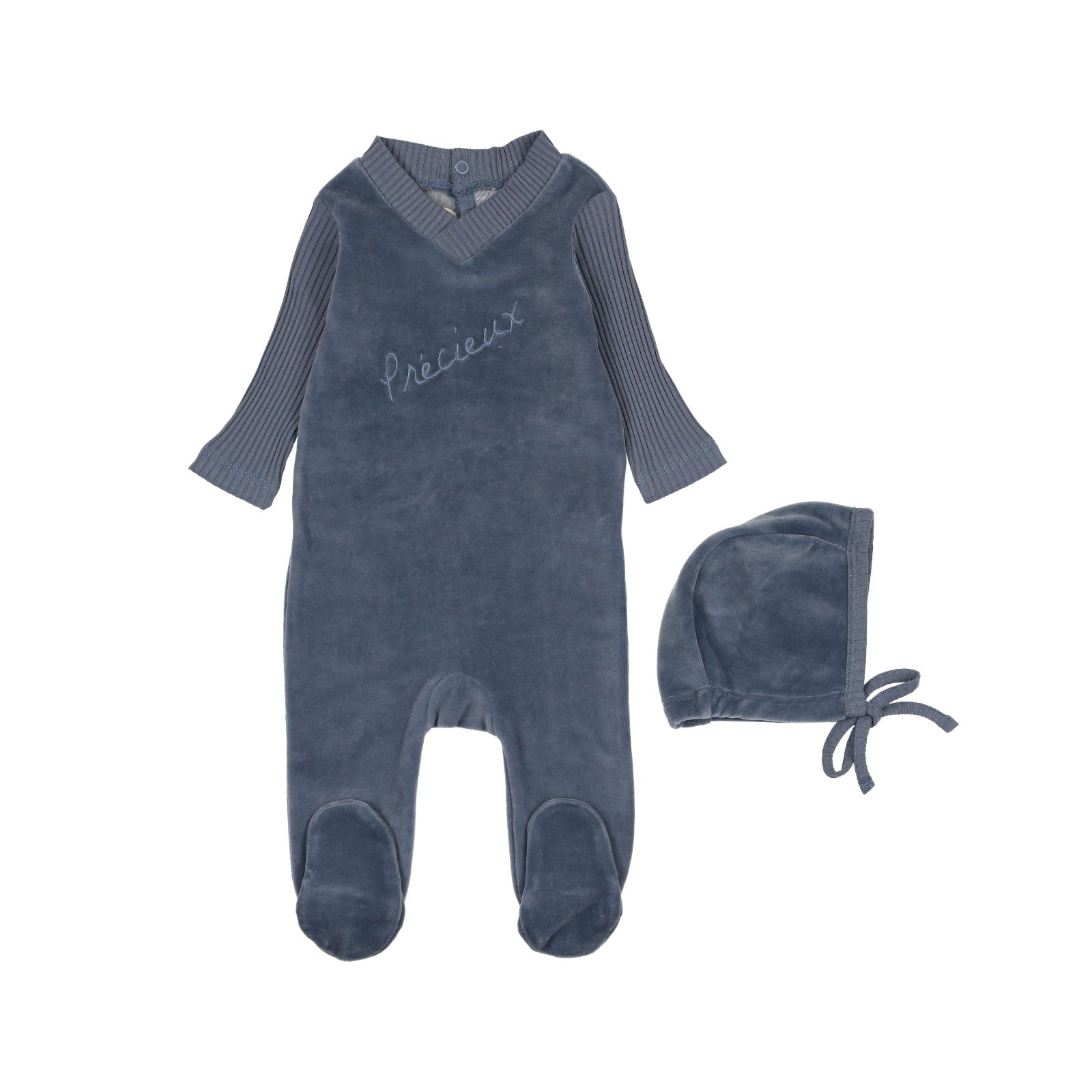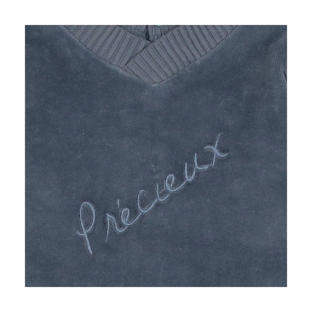 Soft. Stylish. Features ribbed sleeves and a ribbed V-neck trim. The word (precious) is delicately embroidered on the chest, adding a sweet and meaningful detail to this timeless piece. Perfect for the most precious people in your life.