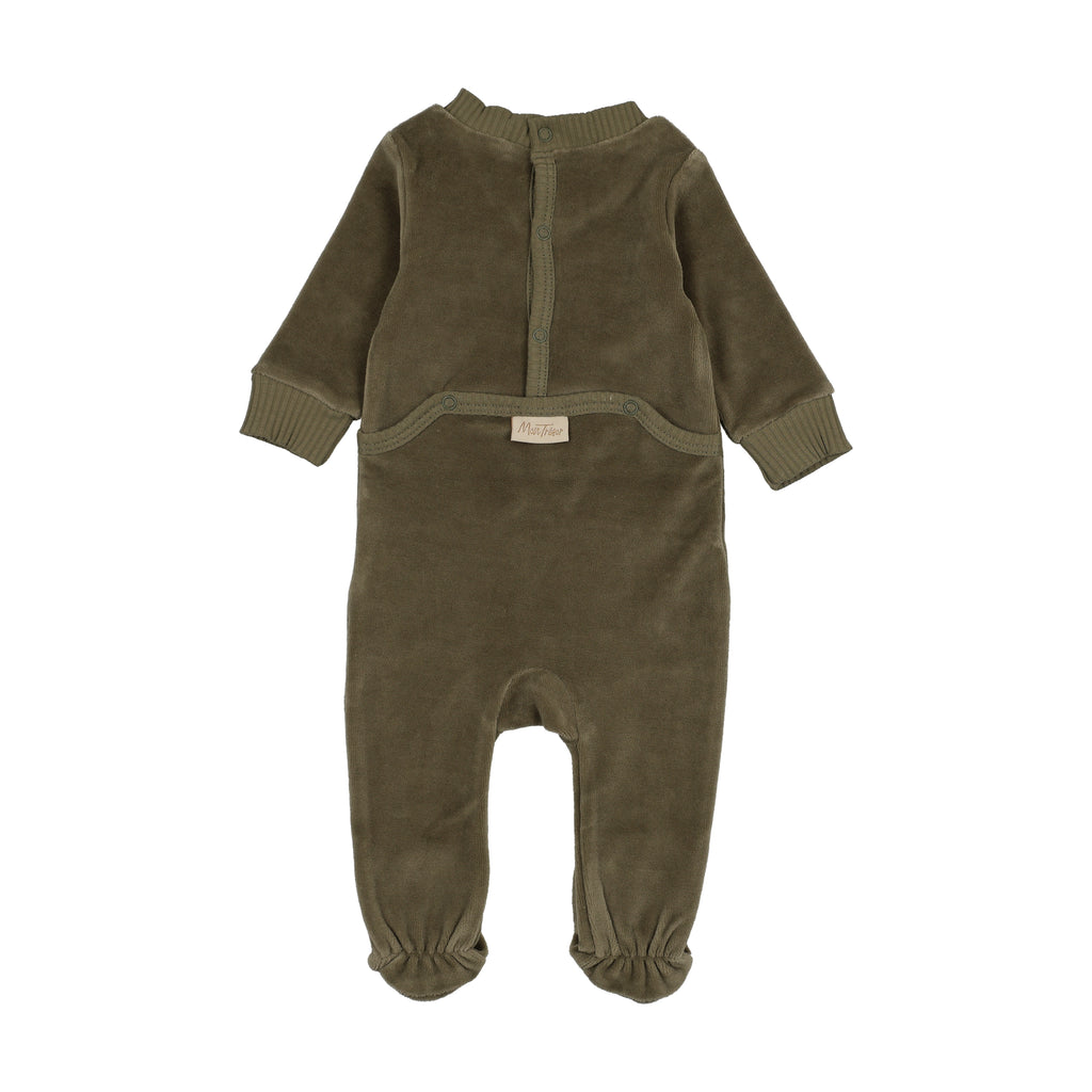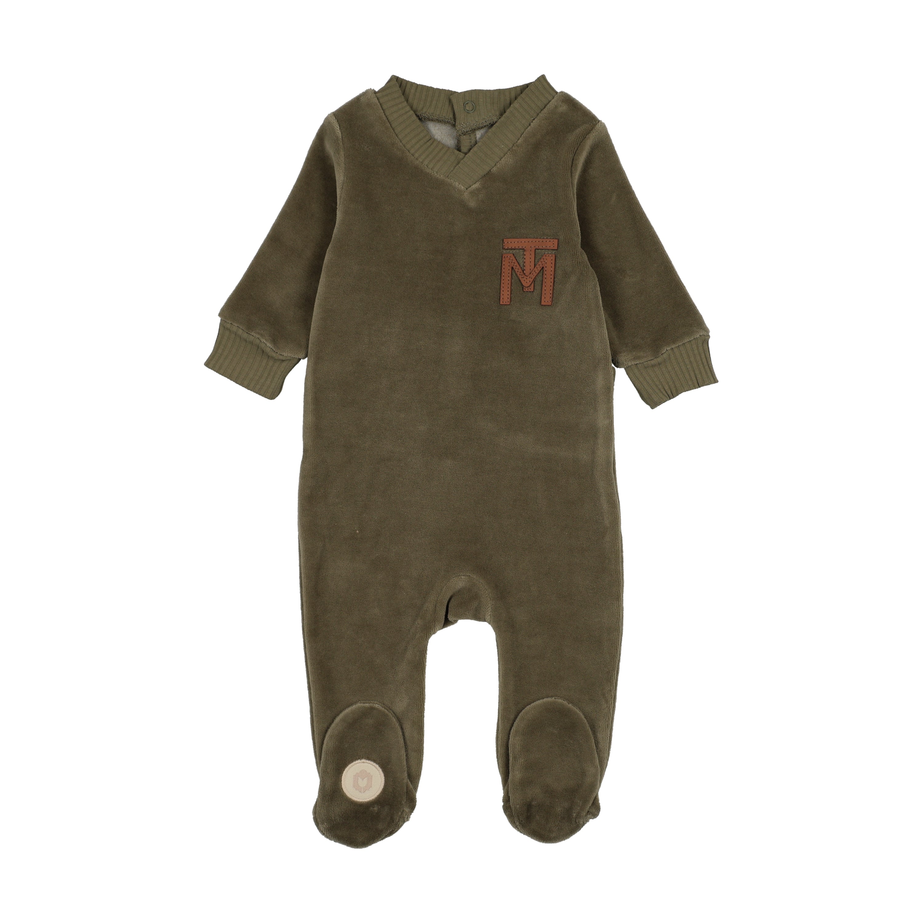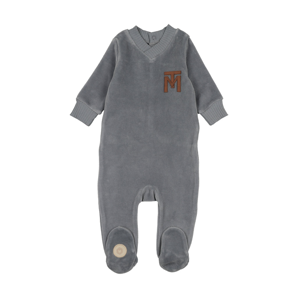 Say sophisticated in French without opening your mouth. This velour footie features ribbed cuffs and a sleek V-neck ribbed trim for a touch of tailored charm. The leather appliqué MT emblem on the chest adds a touch of sophistication, making this more than just cozy — it's iconic. Deck out siblings in the matching two-piece set.