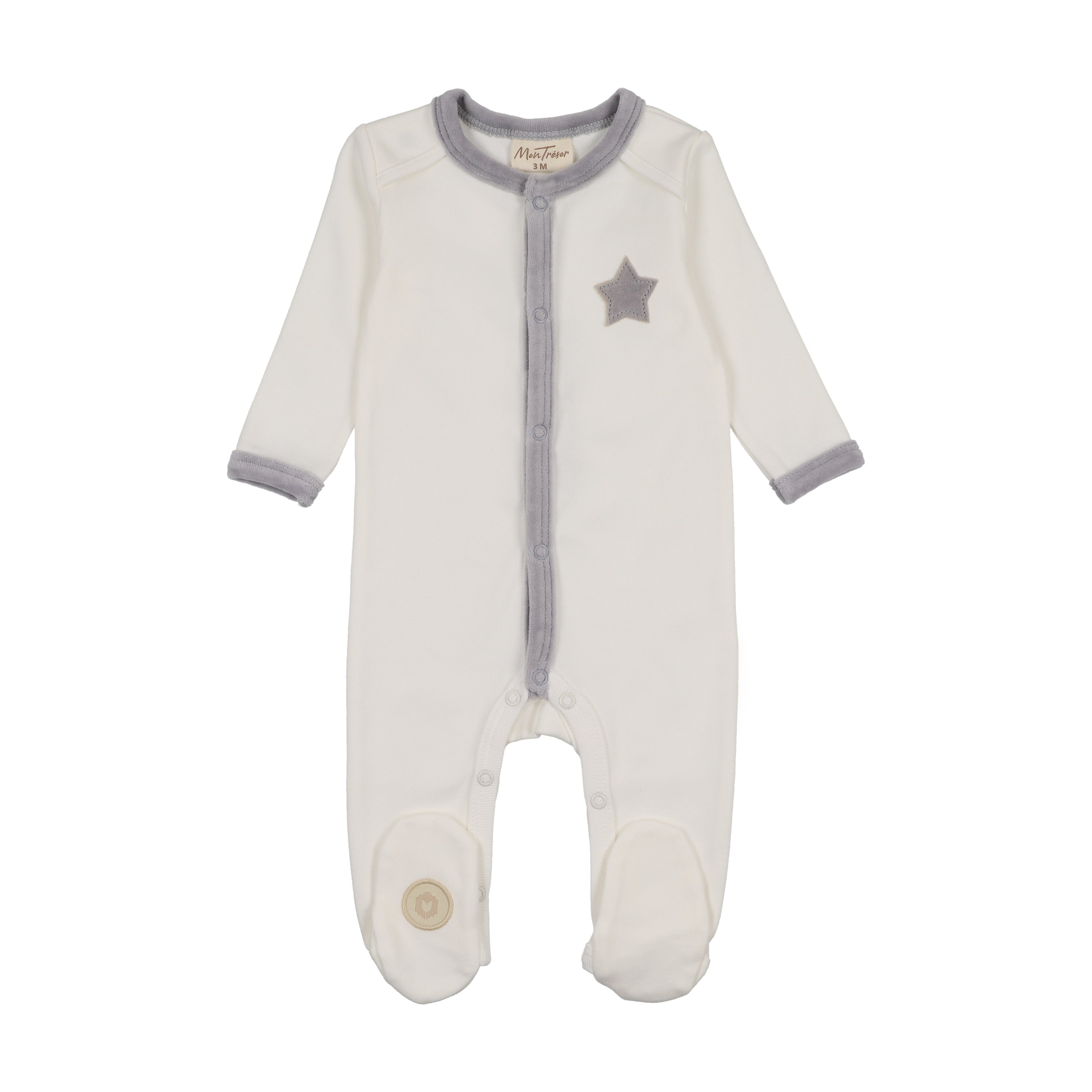 Wrap your little one in the softest cotton with this adorable footie, featuring velour trims for a touch of extra coziness. A velour star applique adds a dash of whimsy, while the front closure makes it easy to slip on and off.