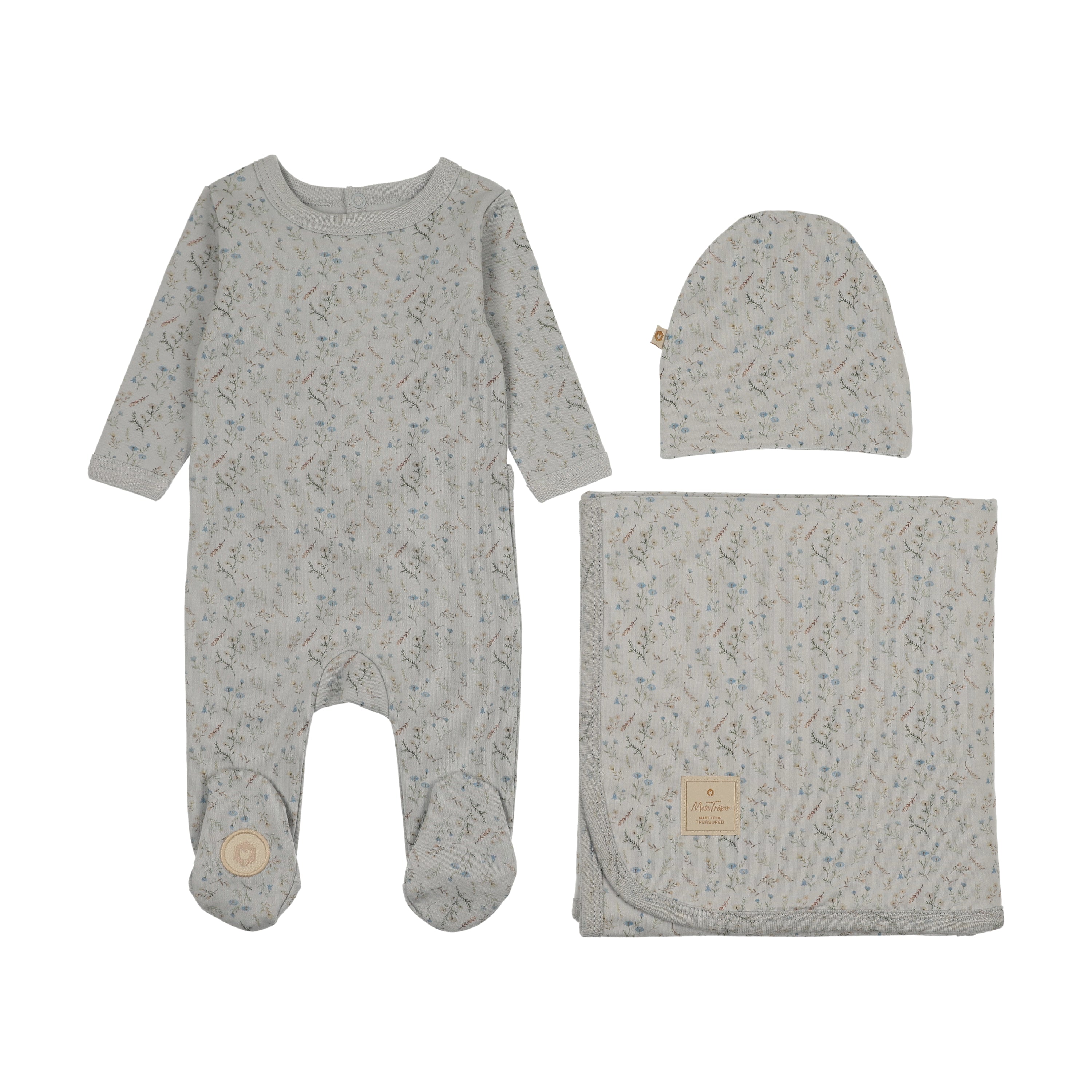 Fully floral footie in brushed cotton? Yes, please! Vibrant-yet-tiny blooms cover the entire footie, creating a cozy, eye-catching look. Paired with a matching floral hat and blanket, this set is as sweet as it is snuggly.