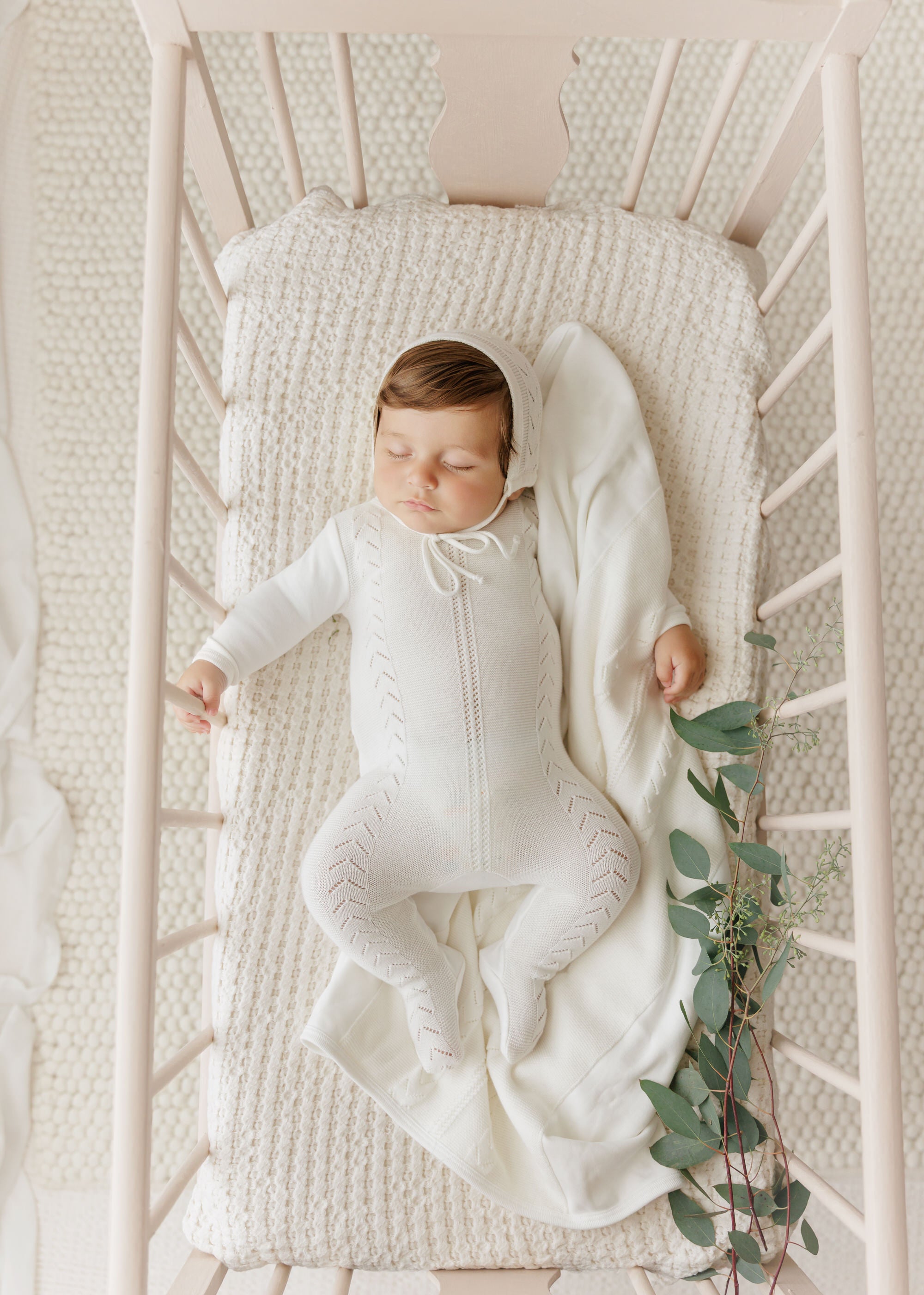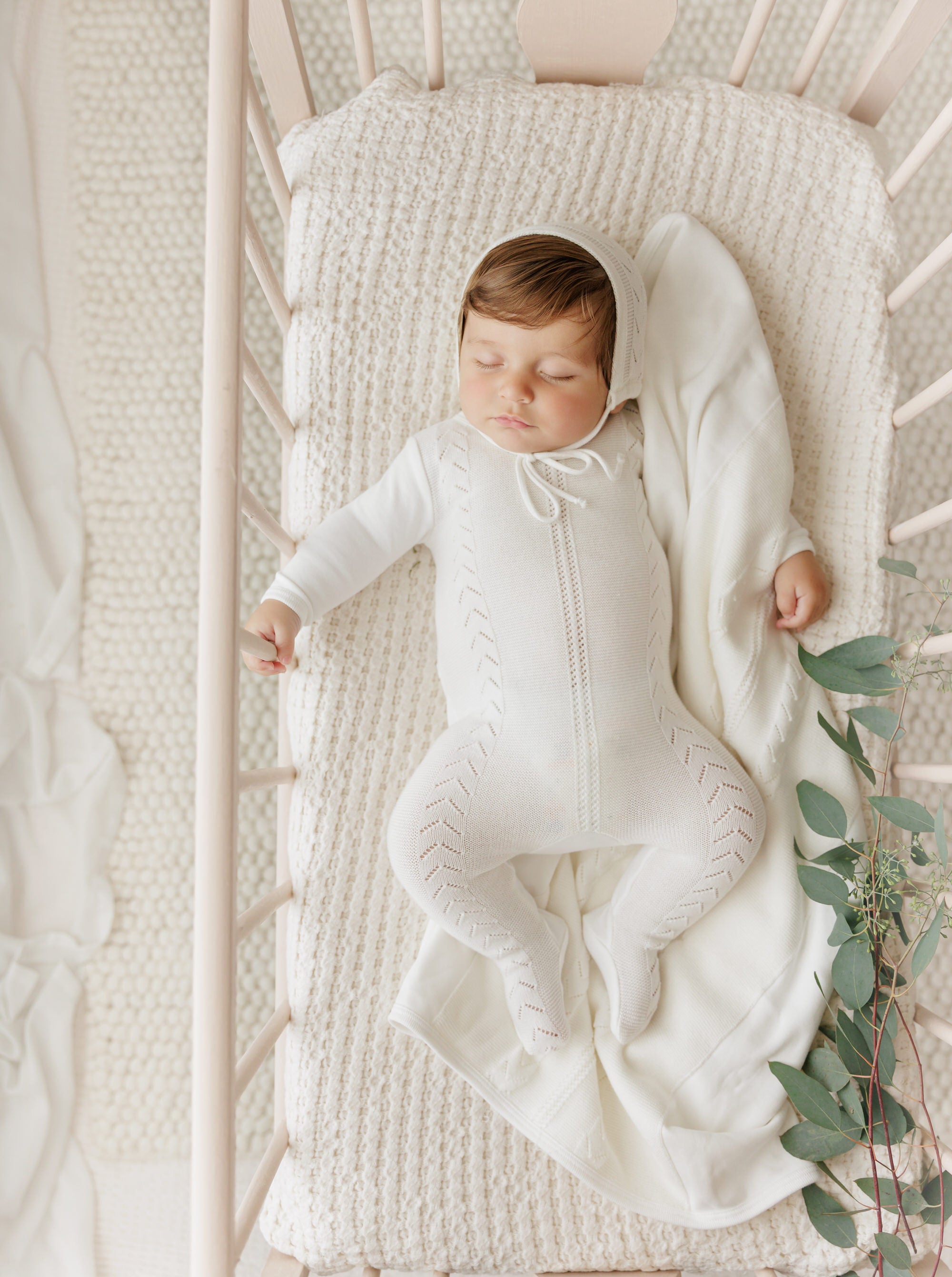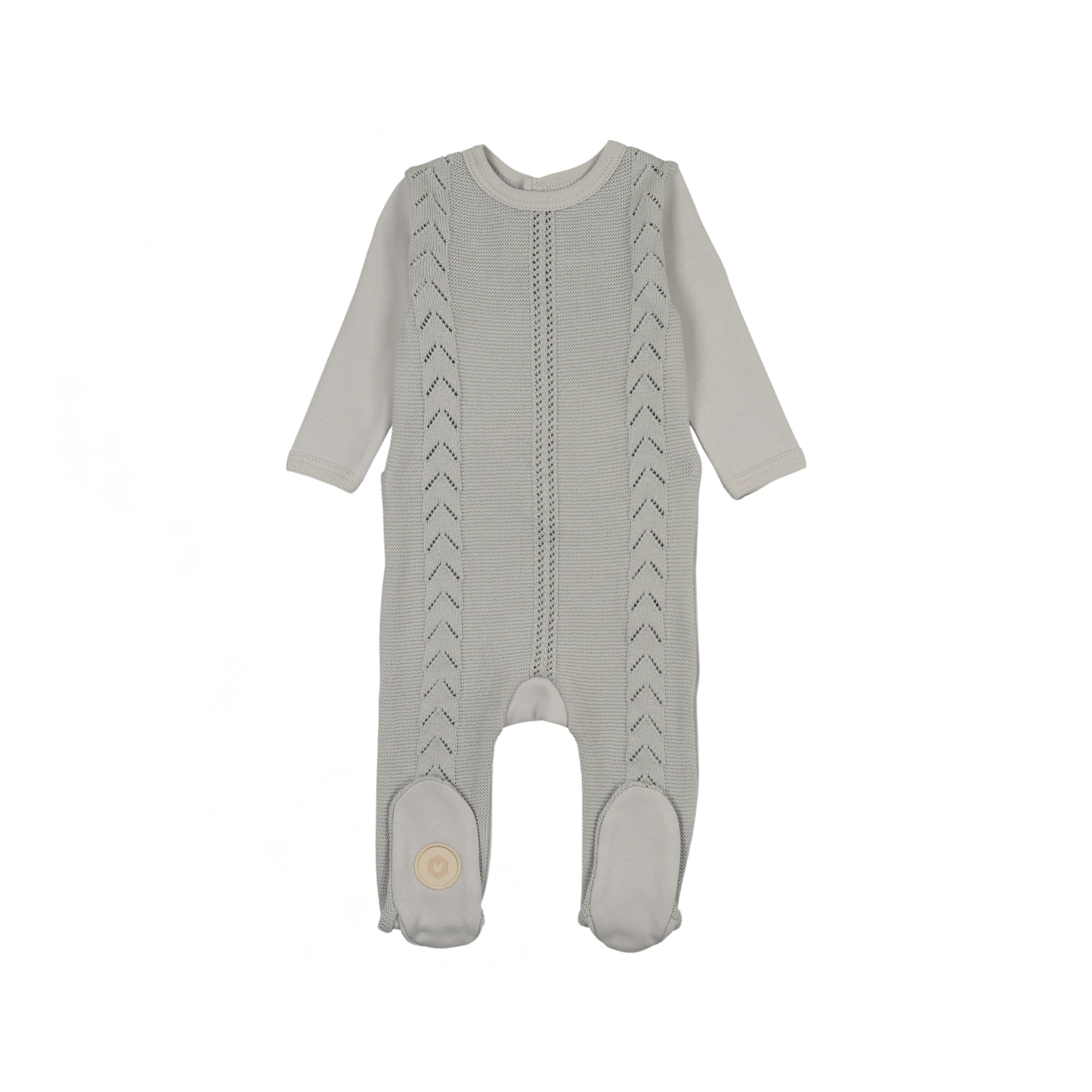 A beautifully coordinated layette set crafted from soft blend of knit and cotton. The footie features elegant vertical cable detail for subtle texture and dimension, paired with a matching knit hat and blanket for a perfectly together look.