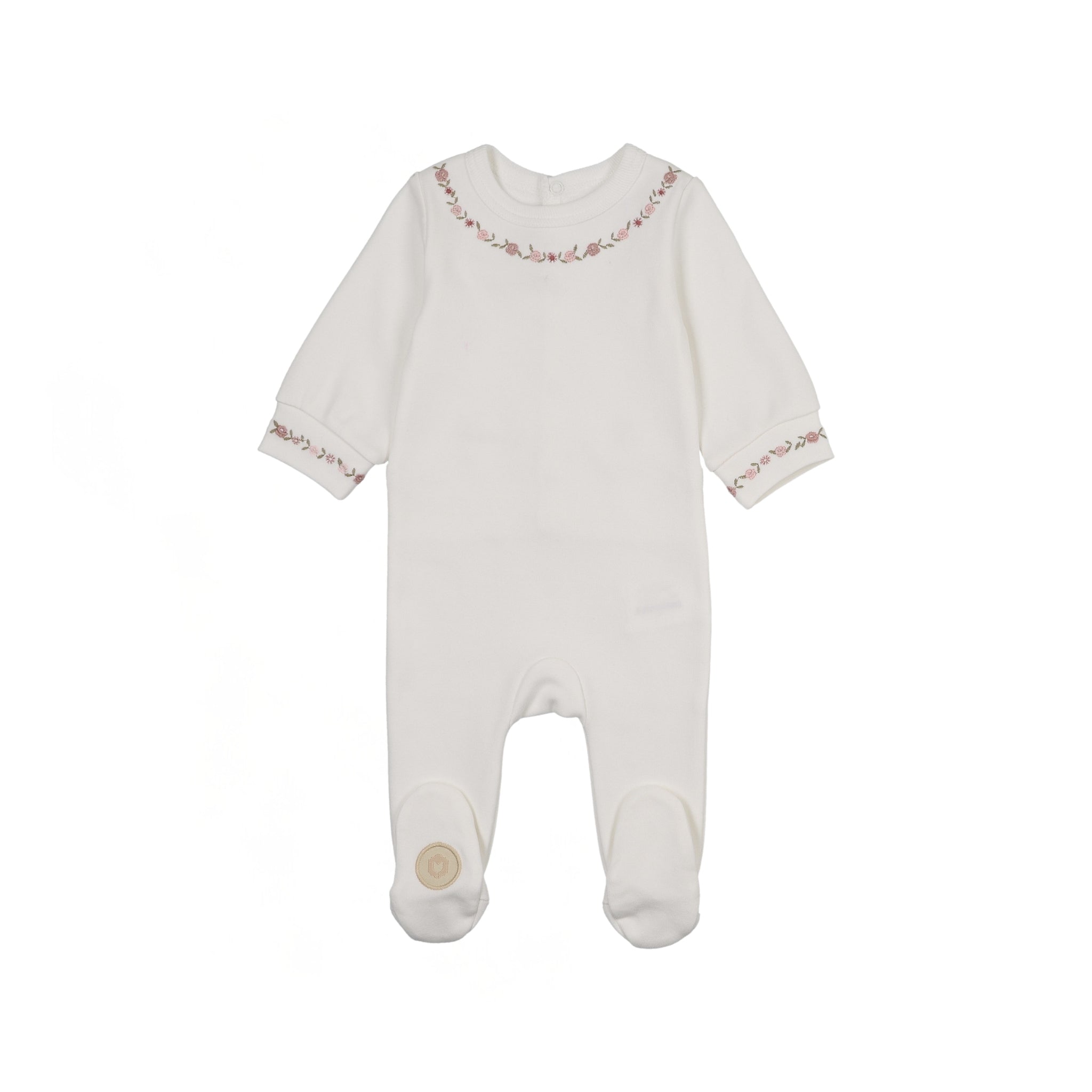A little extra “ooh la la” for baby’s wardrobe. Delicate embroidered berry or floral detailing traces the neckline and cuffs, with coordinating embroidery along the bonnet and blanket edge for a beautifully cohesive look. Finished with a matching hat and blanket adorned with embroidered flowers, this set feels special, thoughtful, and exquisitely detailed.