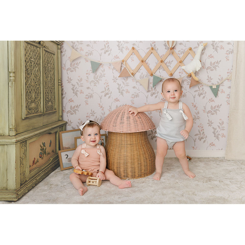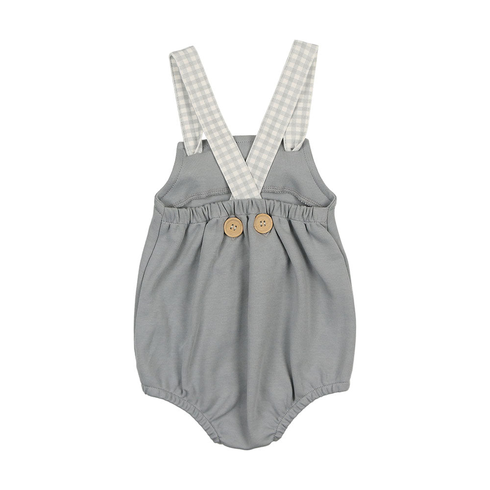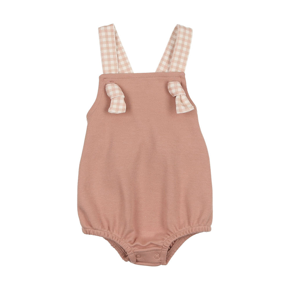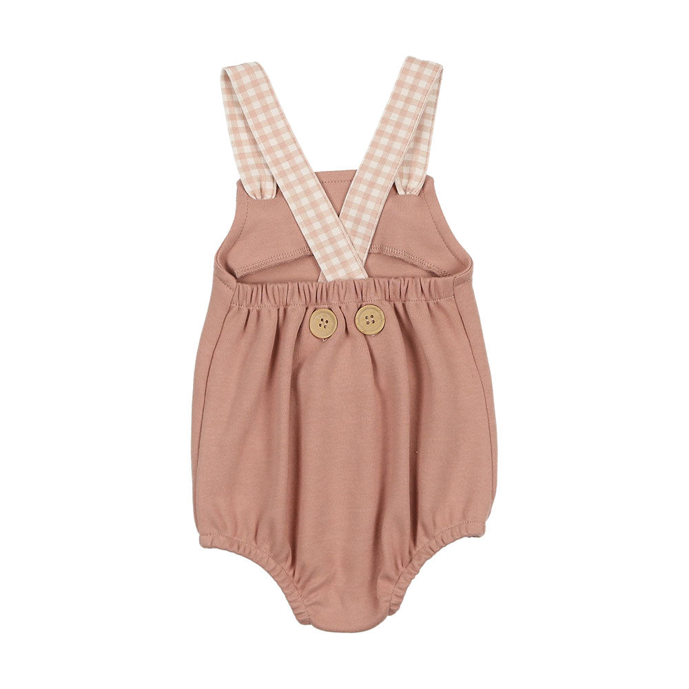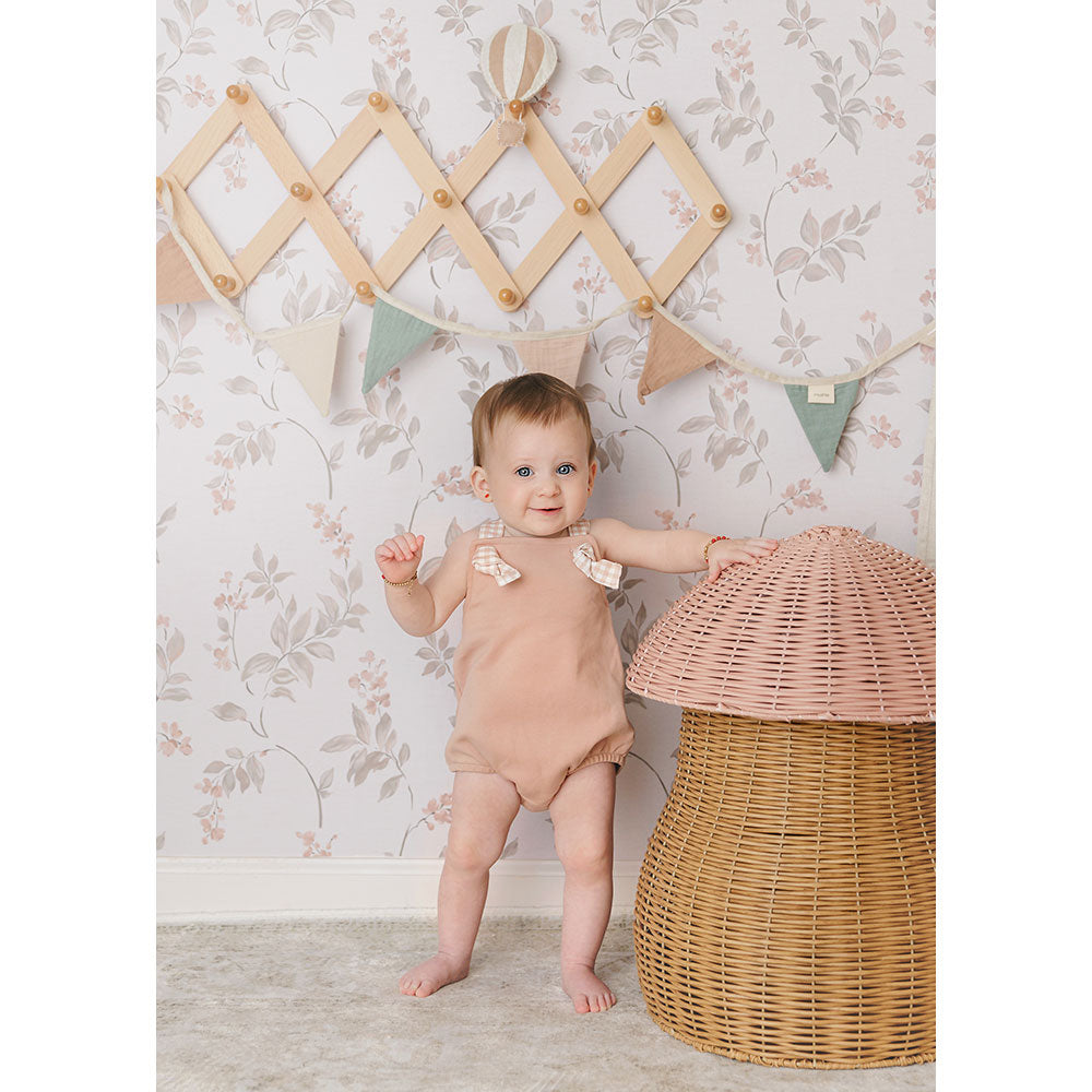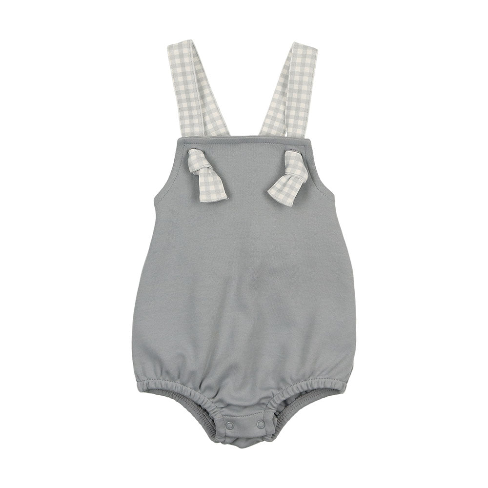 The defining feature of this delightful cotton romper is the gingham printed straps that tie in two neat little knots at the front. Watch your baby entrance everyone in it.