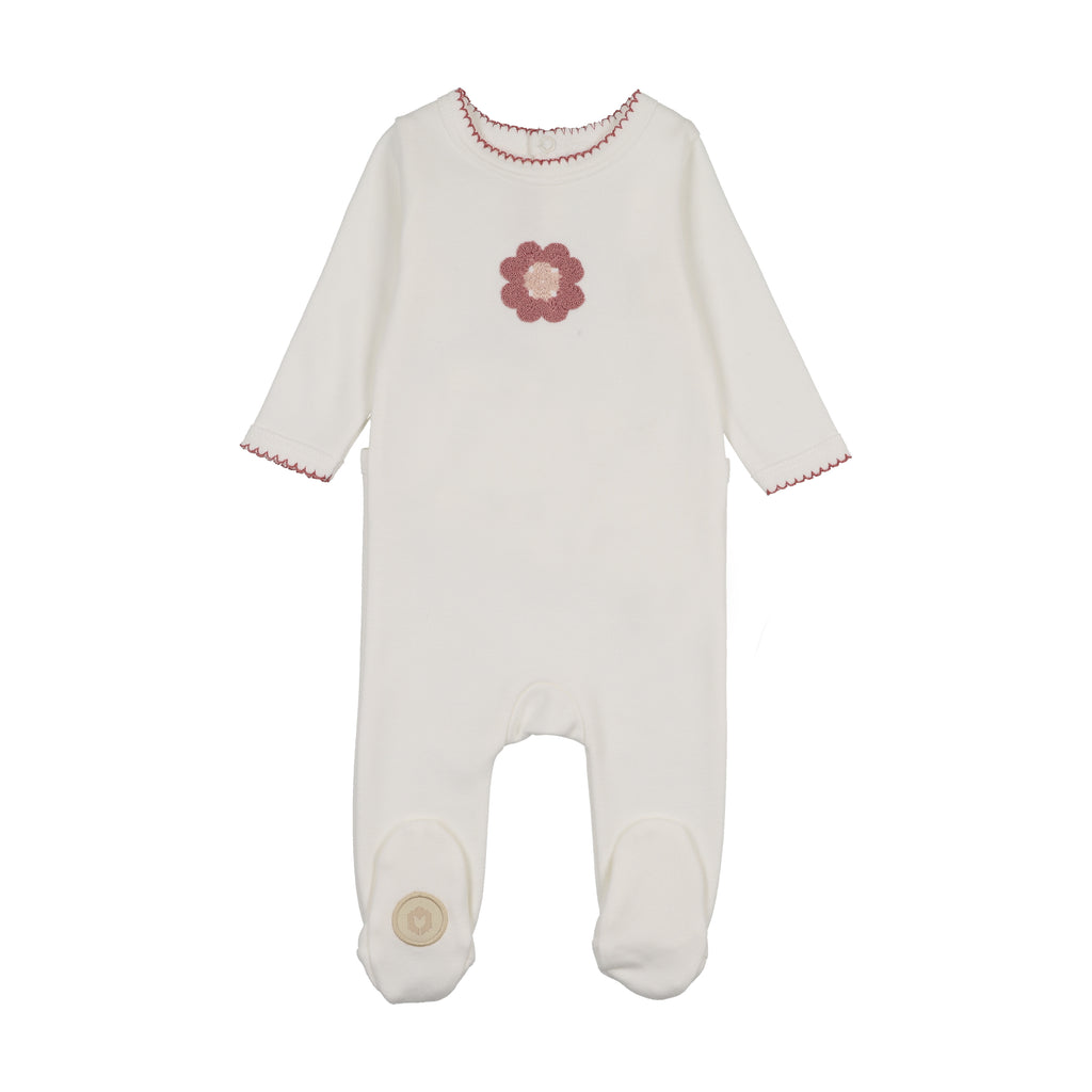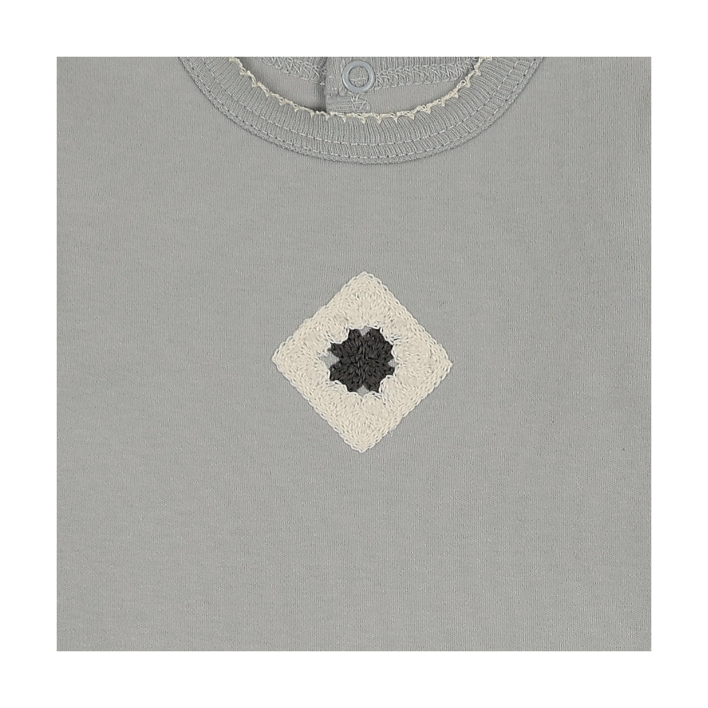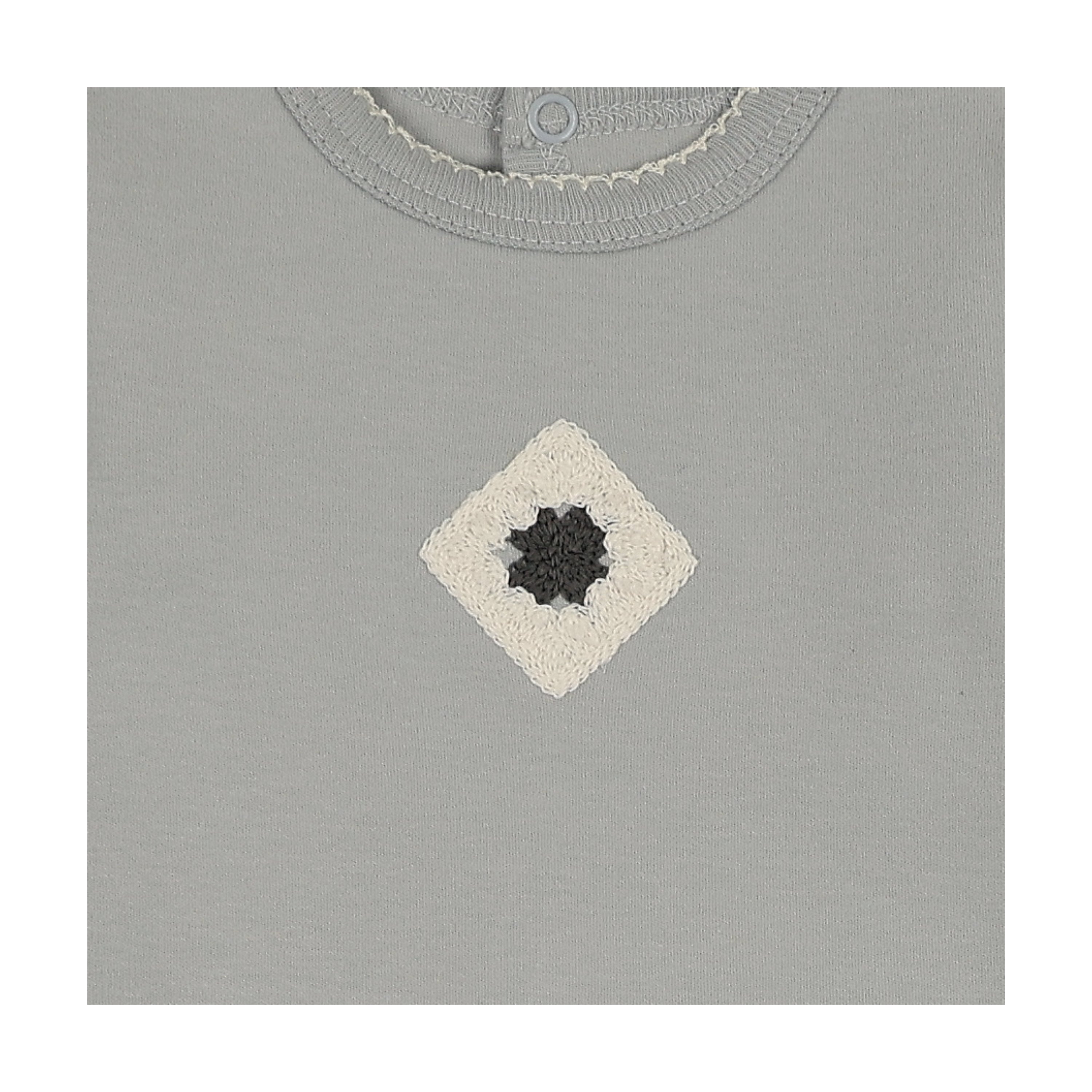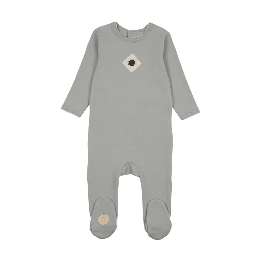 Do well in geometry this season. This uniquely blissful cotton footie is adorned with a charming knit flower and geometric shape appliqué on the chest. Here's a modern twist on timeless design. Paired with a beautifully knit blanket featuring matching geometric shapes and a coordinating hat.