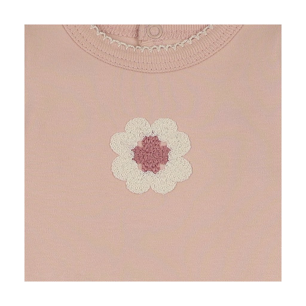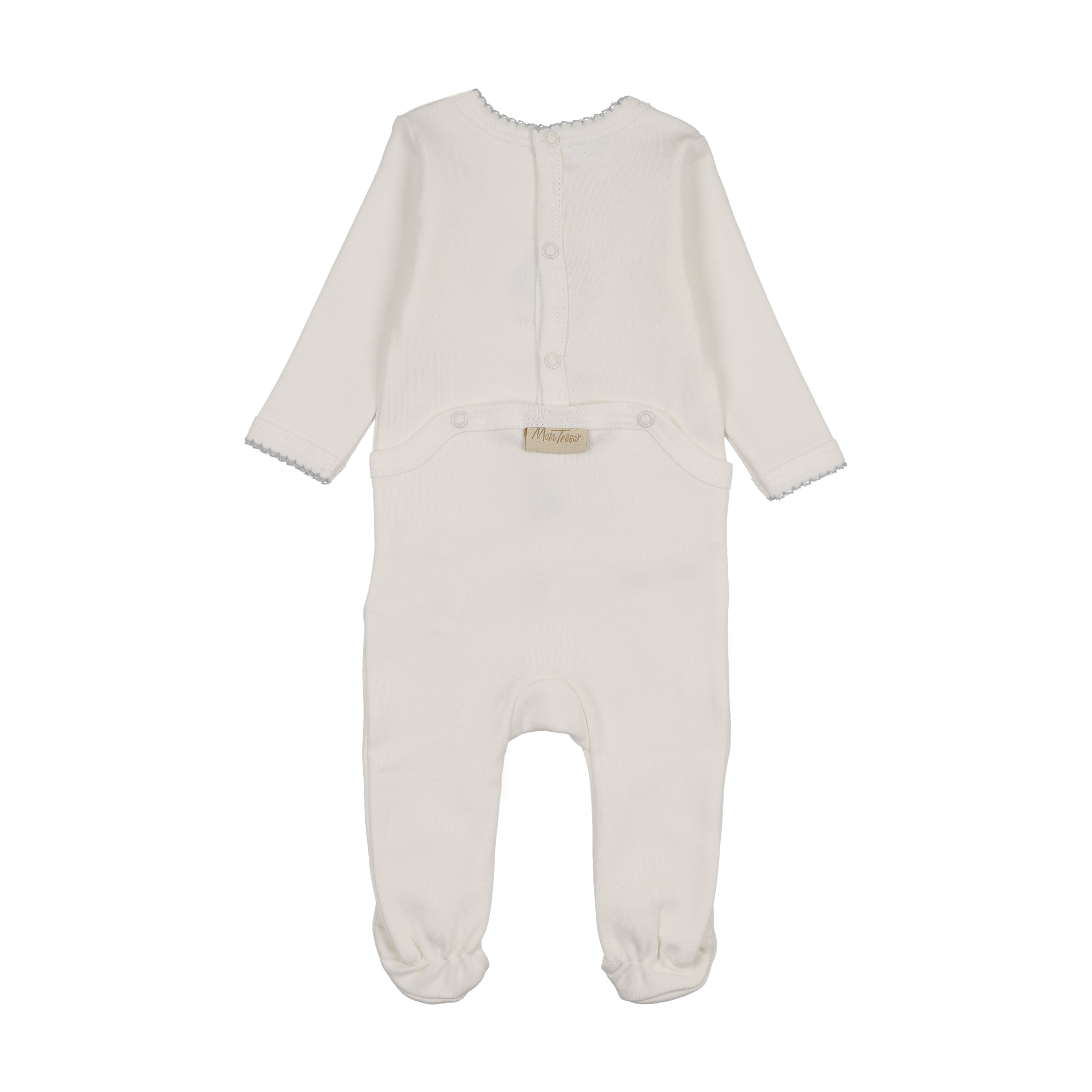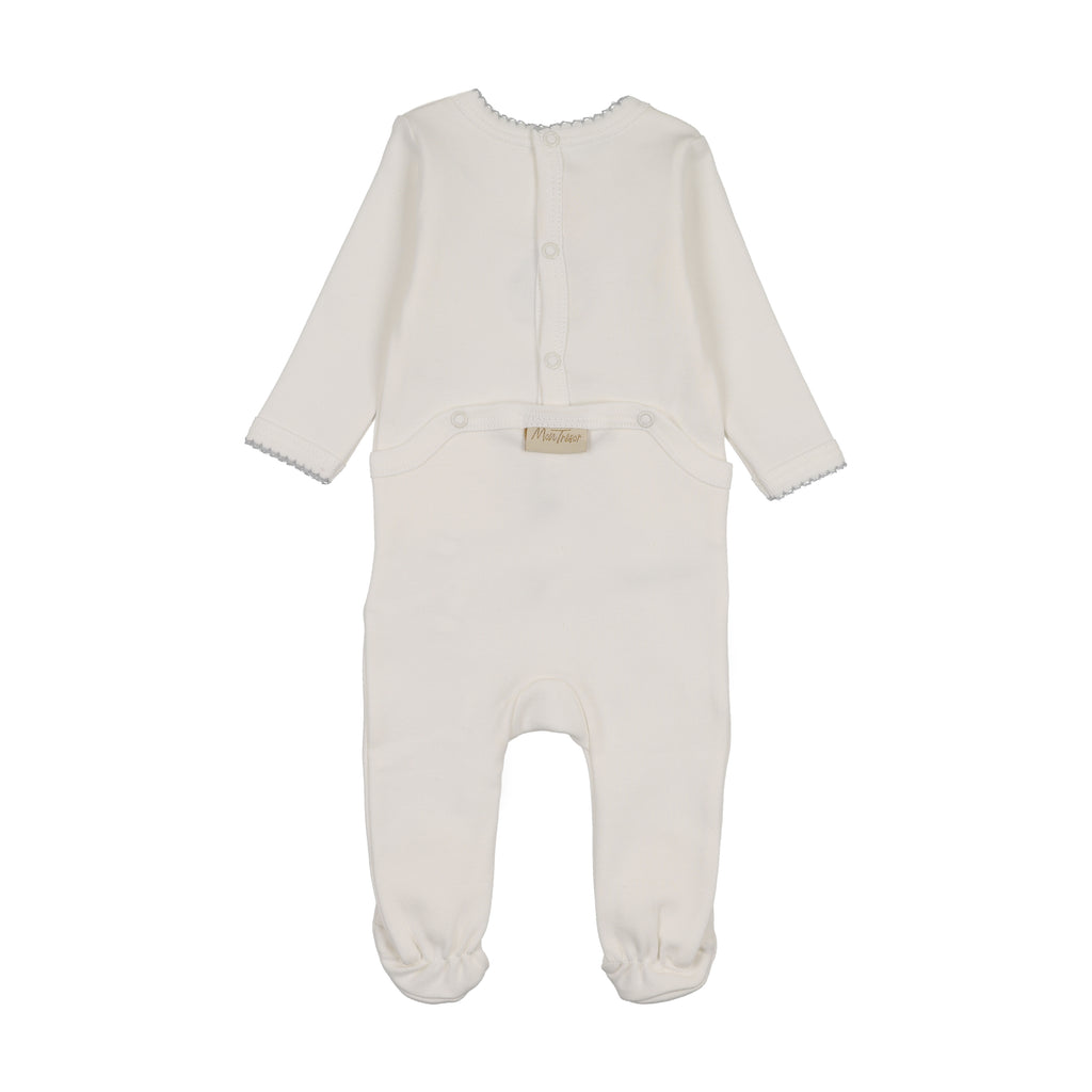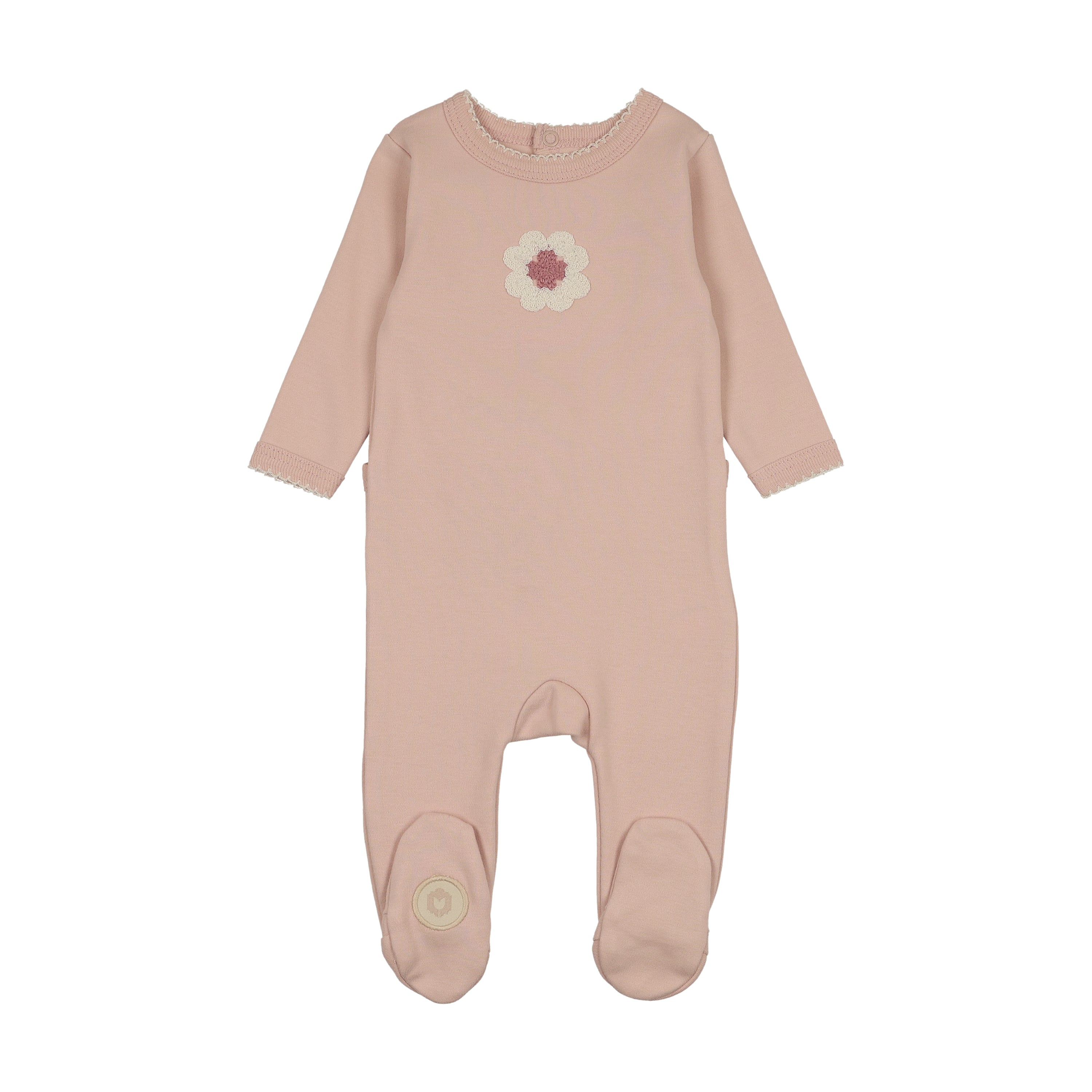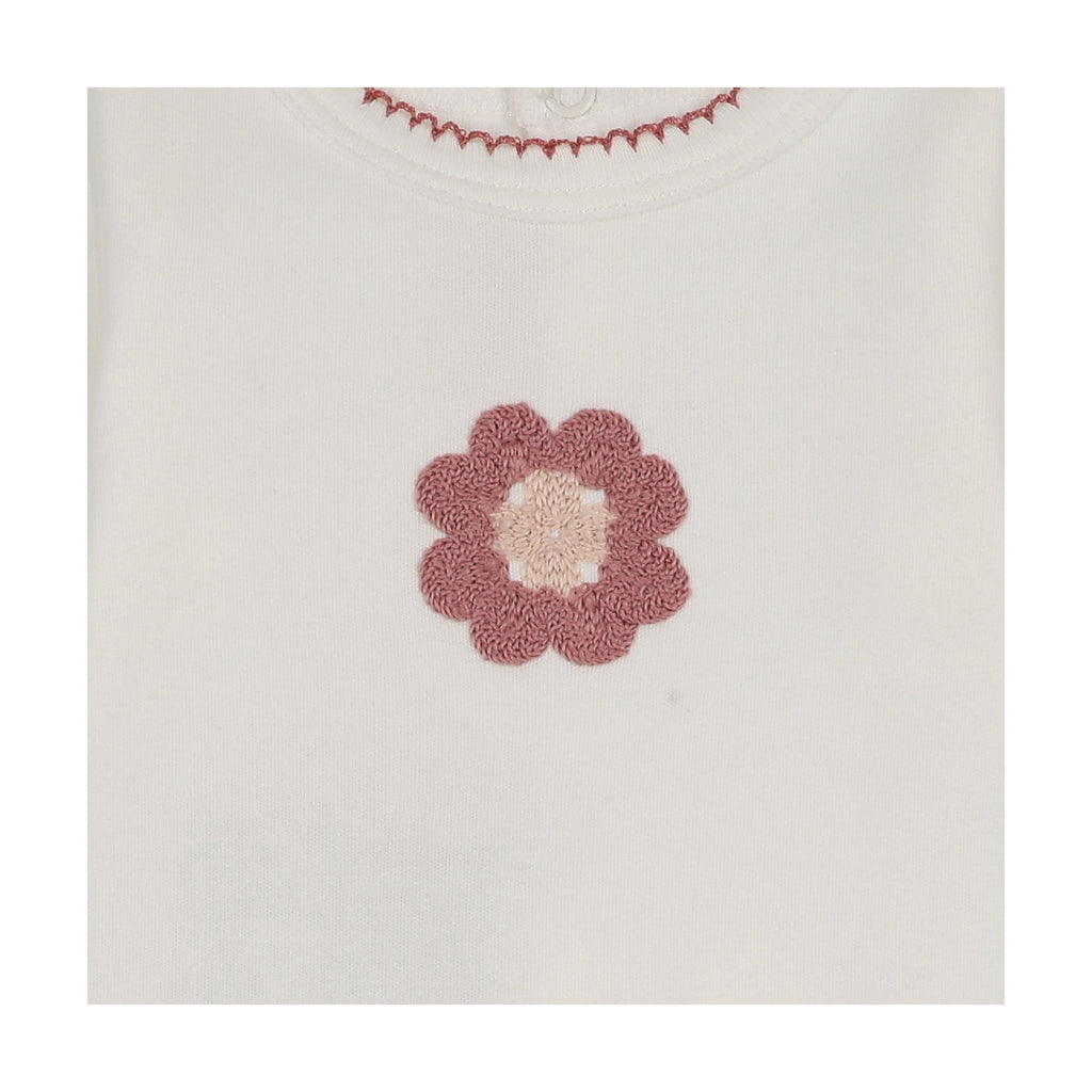 Do well in geometry this season. This uniquely blissful cotton footie is adorned with a charming knit flower and geometric shape appliqué on the chest. Here's a modern twist on timeless design. Paired with a beautifully knit blanket featuring matching geometric shapes and a coordinating hat.