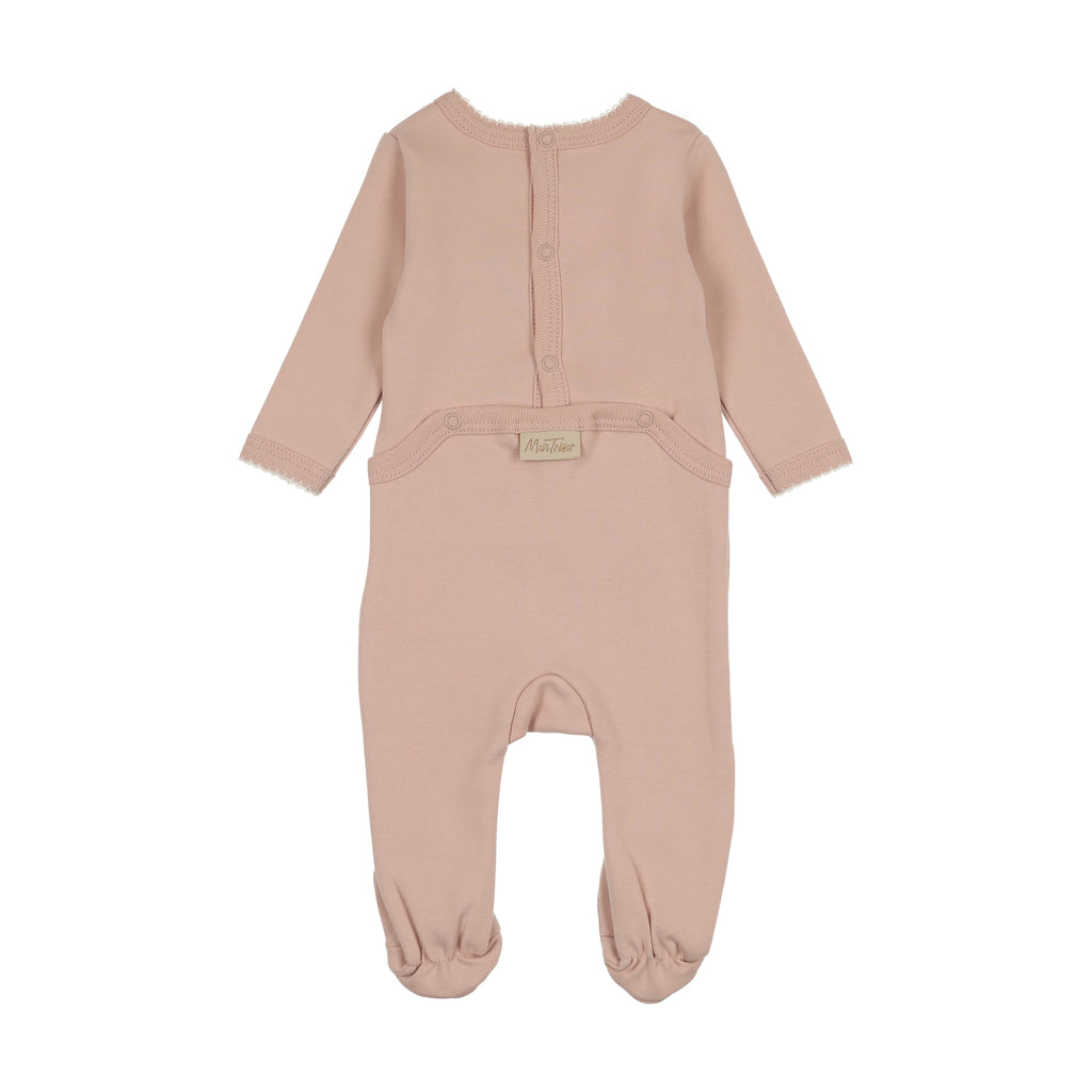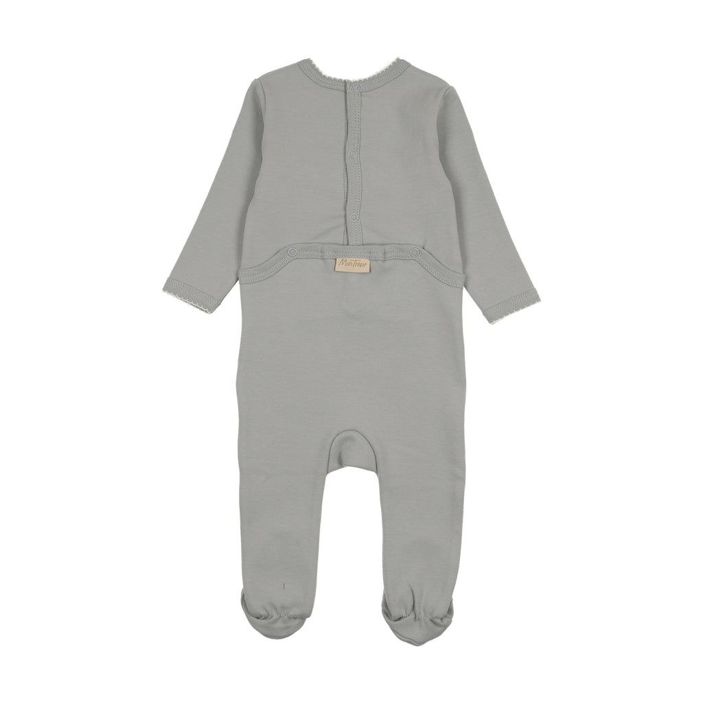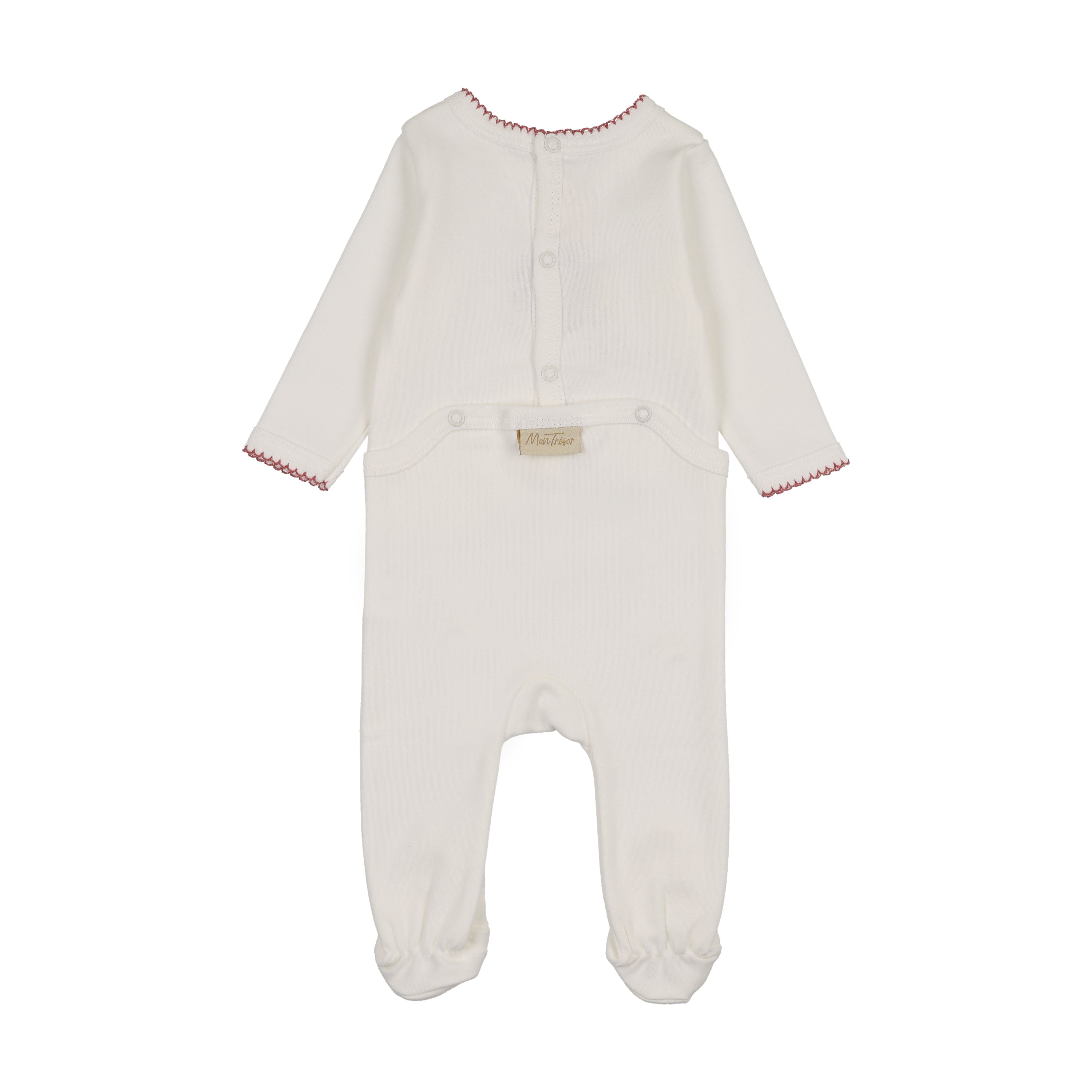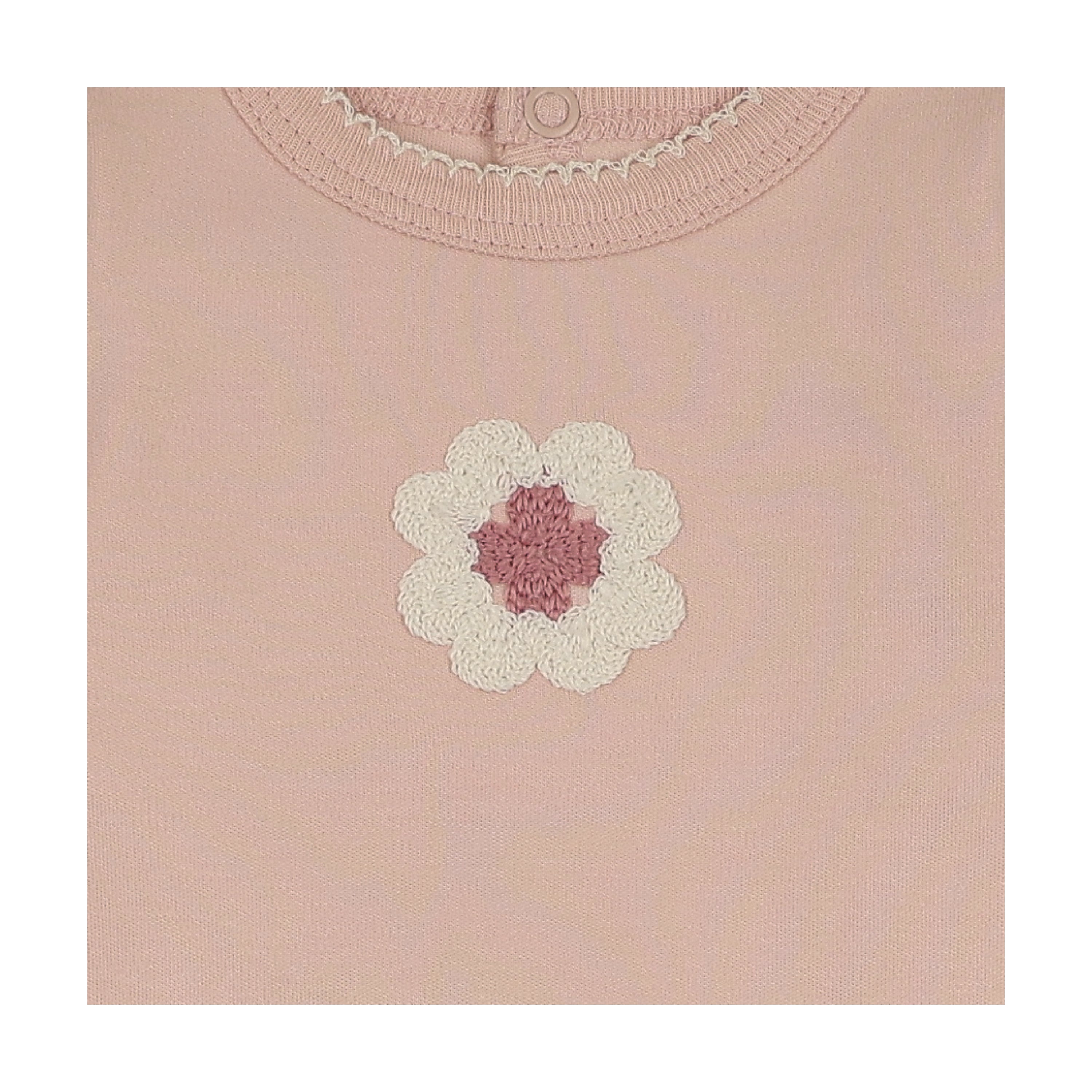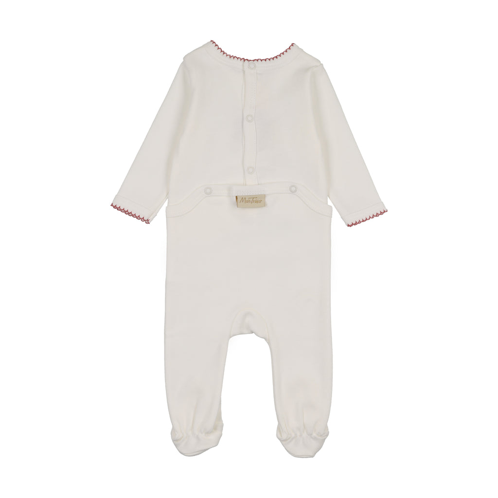 Do well in geometry this season. This uniquely blissful cotton footie is adorned with a charming knit flower and geometric shape appliqué on the chest. Here's a modern twist on timeless design. Paired with a beautifully knit blanket featuring matching geometric shapes and a coordinating hat.