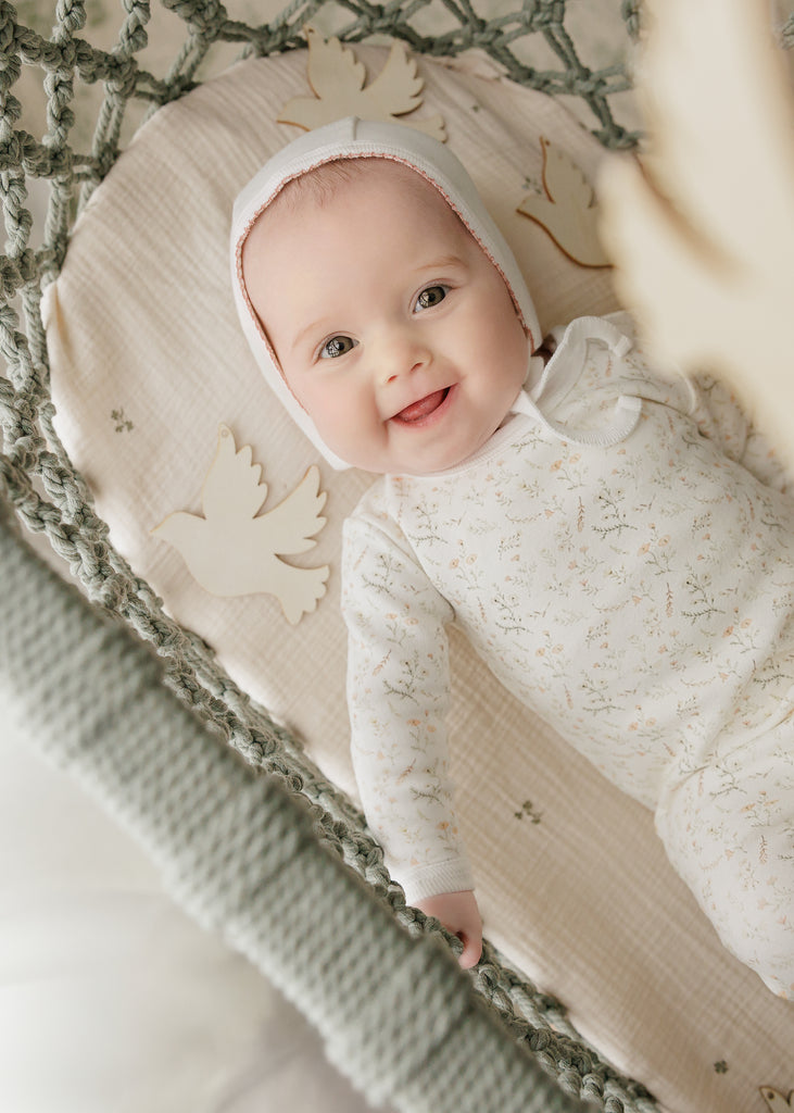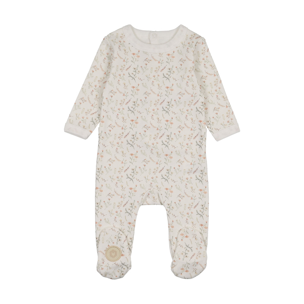Fully floral footie in brushed cotton? Yes, please! Vibrant yet tiny blooms cover the entire footie, creating a cozy, eye-catching look.
